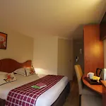 Located near the business district of Tremblay-en-France, the comfortable 3-star Greenhotels Roissy Parc Des Expositions Tremblay-en-France hotel offers comfortable rooms as well as a sun deck, spa therapy, and a shared lounge. The smoke-free hotel is proud to feature a banquet hall, within 5 minutes' drive of Eglise Saint-Eloi Church.